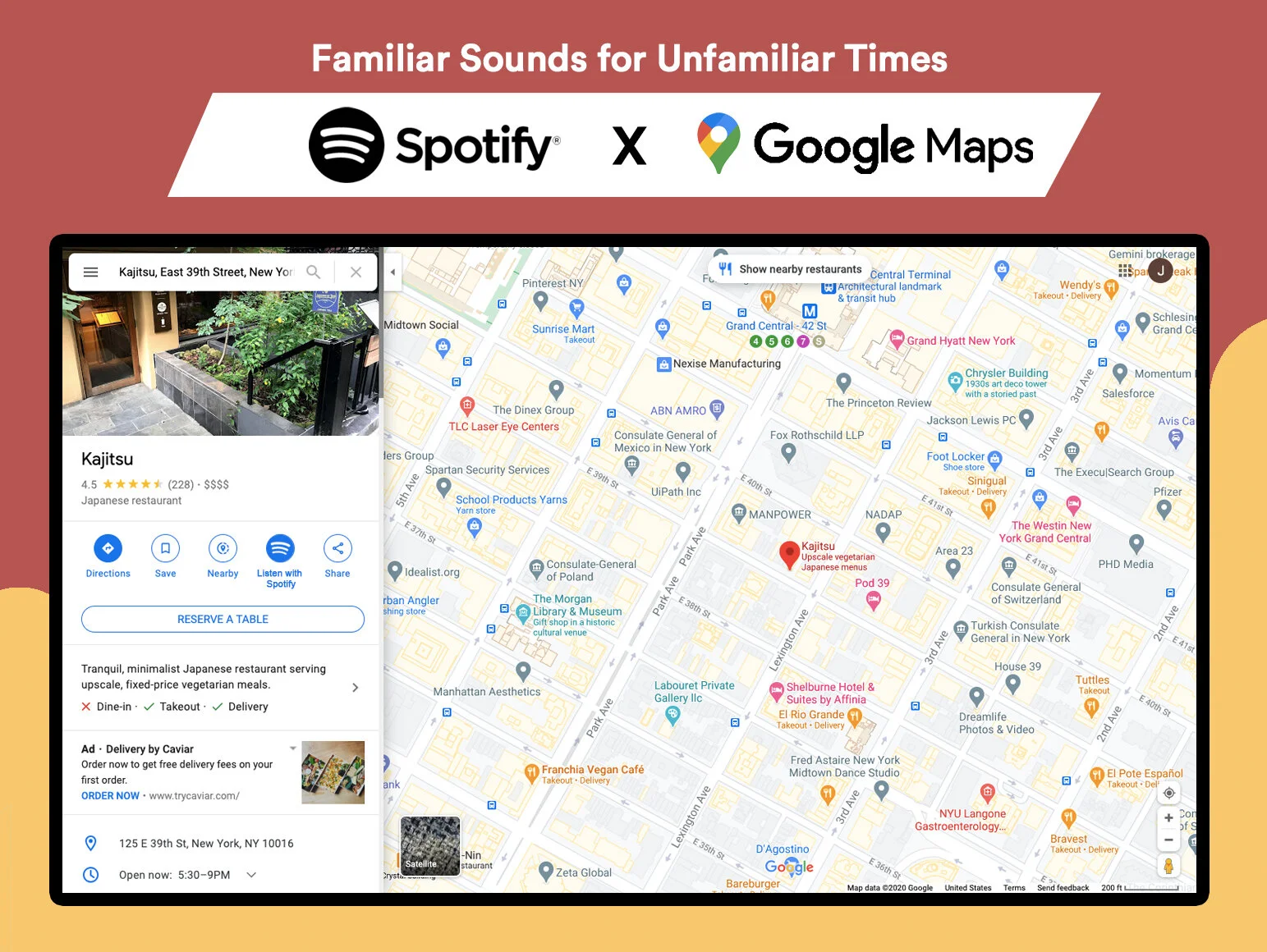 Idea: Familiar Sounds for Unfamiliar Times. Through music, connecting restaurants and consumers when they couldn’t be further apart.